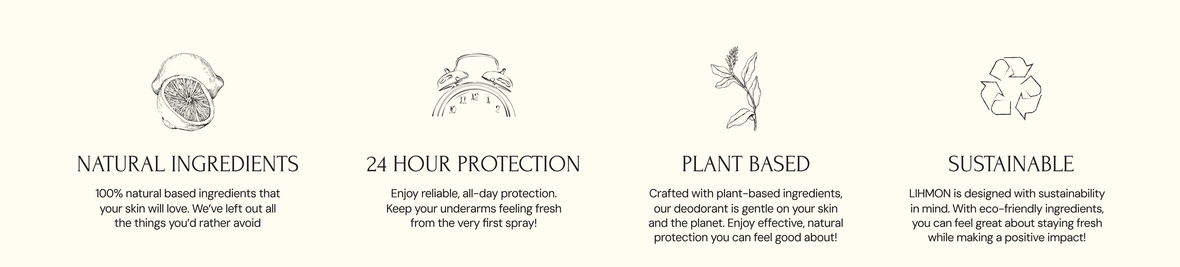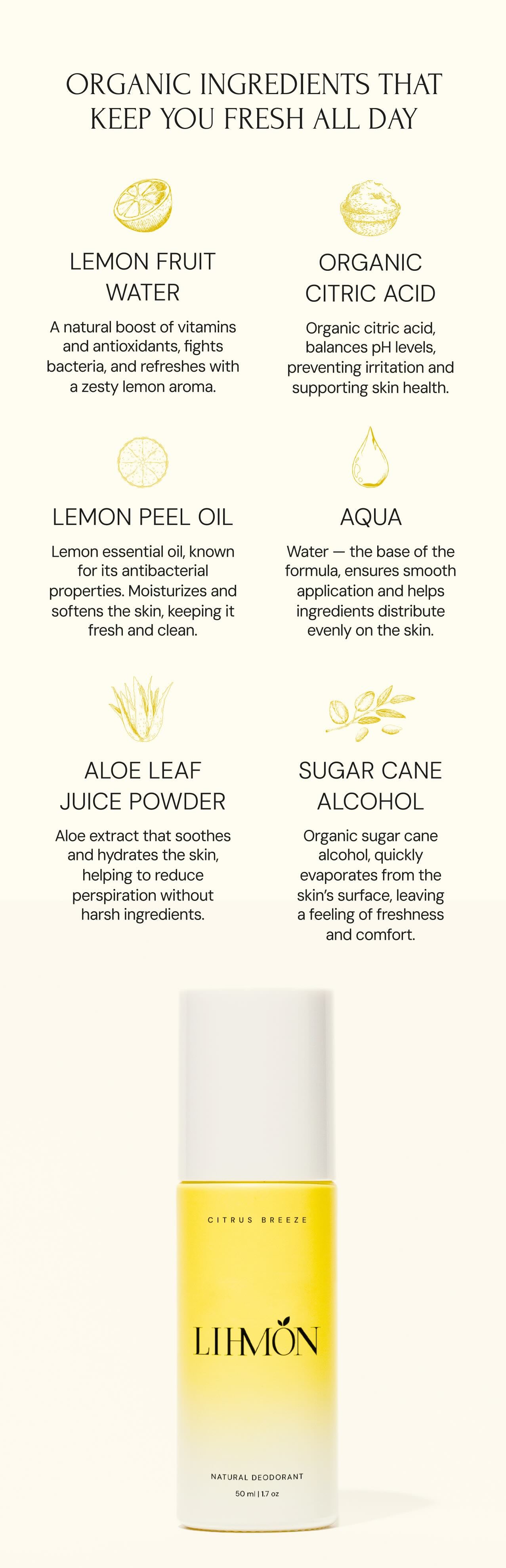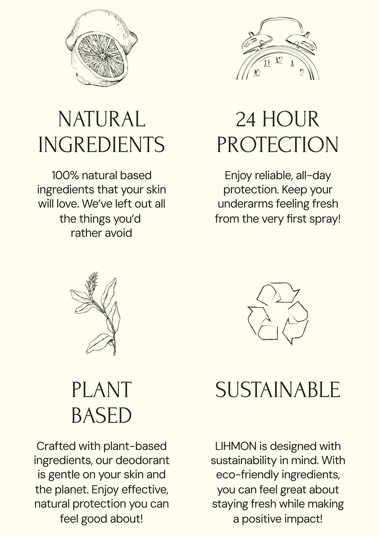 Designed to refresh, balance, and protect naturally - without compromise. A bright, clean lemon scent lifts your senses, leaving you fresh and confident with every spray 🍋